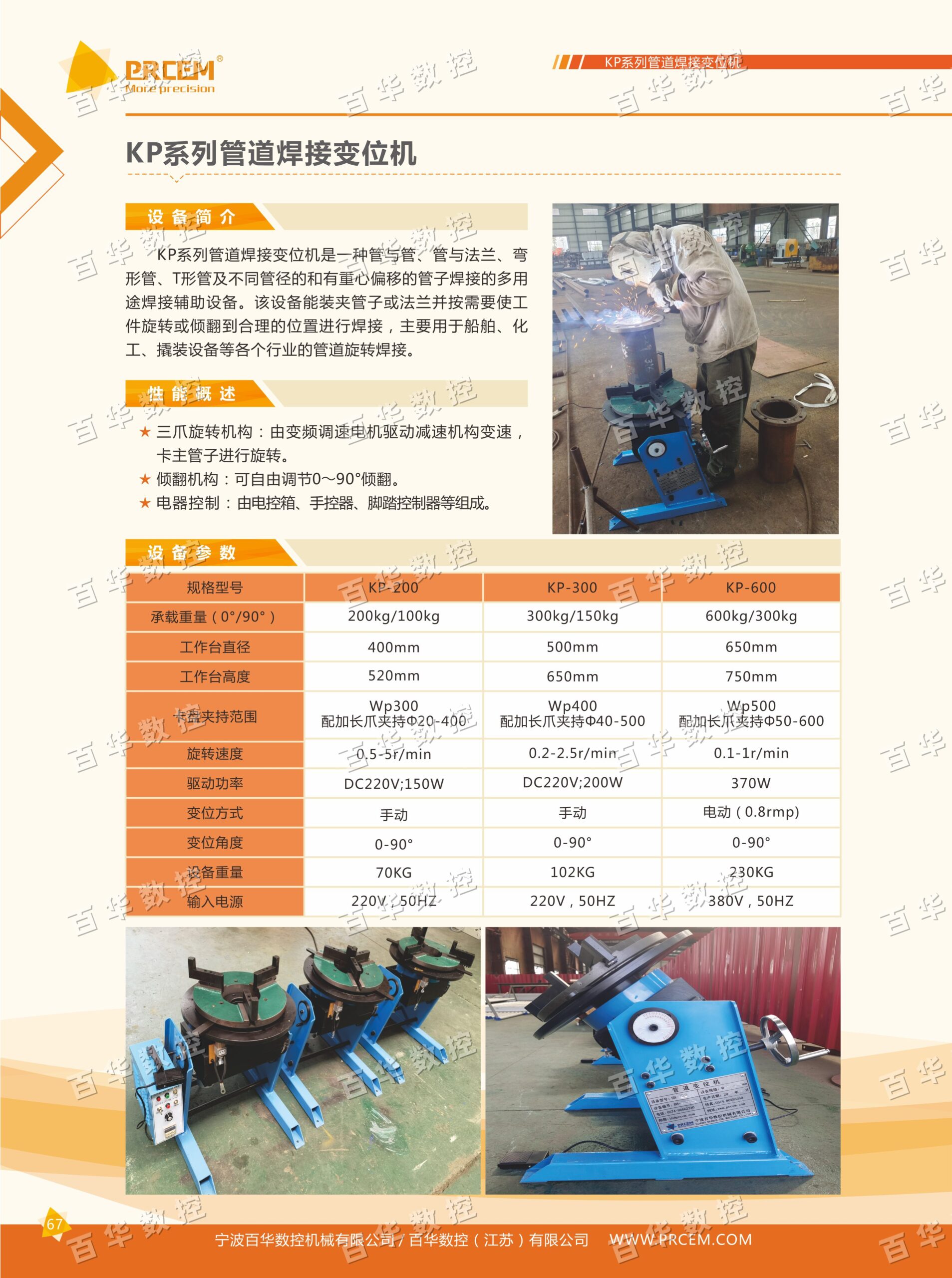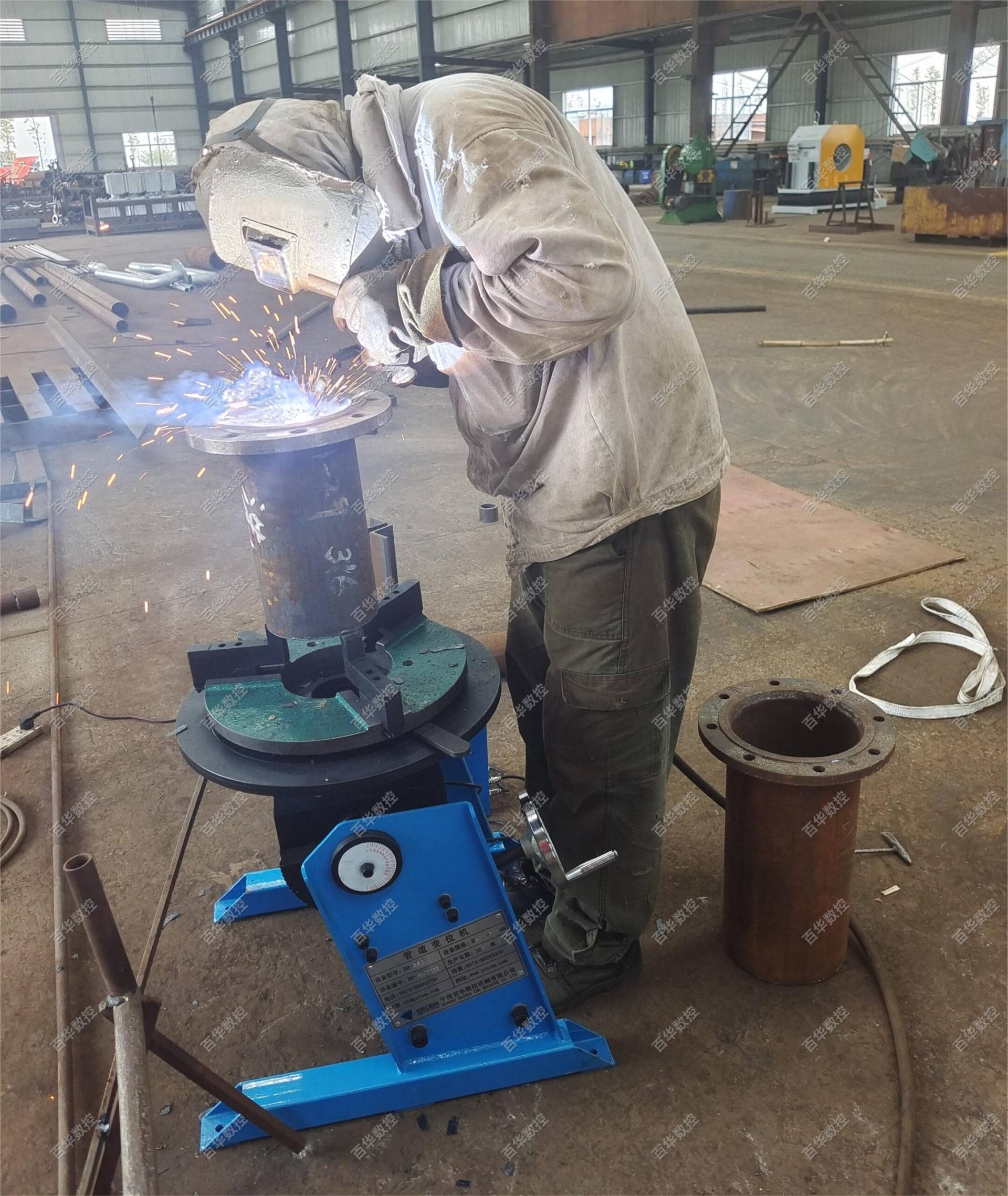KP系列管道焊接变位机是一种管与管、管与法兰、弯形管、T形管及不同管径的和有重心偏移的管子焊接的多用途焊接辅助设备。该设备能装夹管子或法兰并按需要使工件旋转或倾翻到合理的位置进行焊接,主要用于船舶、化工、撬装设备等各个行业的管道旋转焊接。