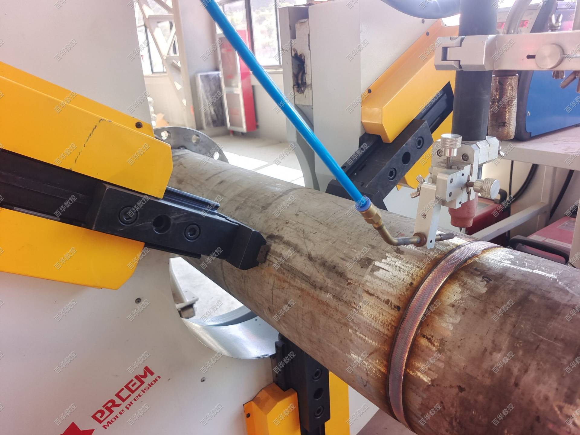 - Stable coaxiality: The workpiece can pass through the U-shaped open clamp for rotary welding, ensuring coaxiality between the workpiece and the clamp’s rotating body. It can be clamped at a position closest to the weld, greatly reducing the influence of pipe ovality and bending on the welding quality.