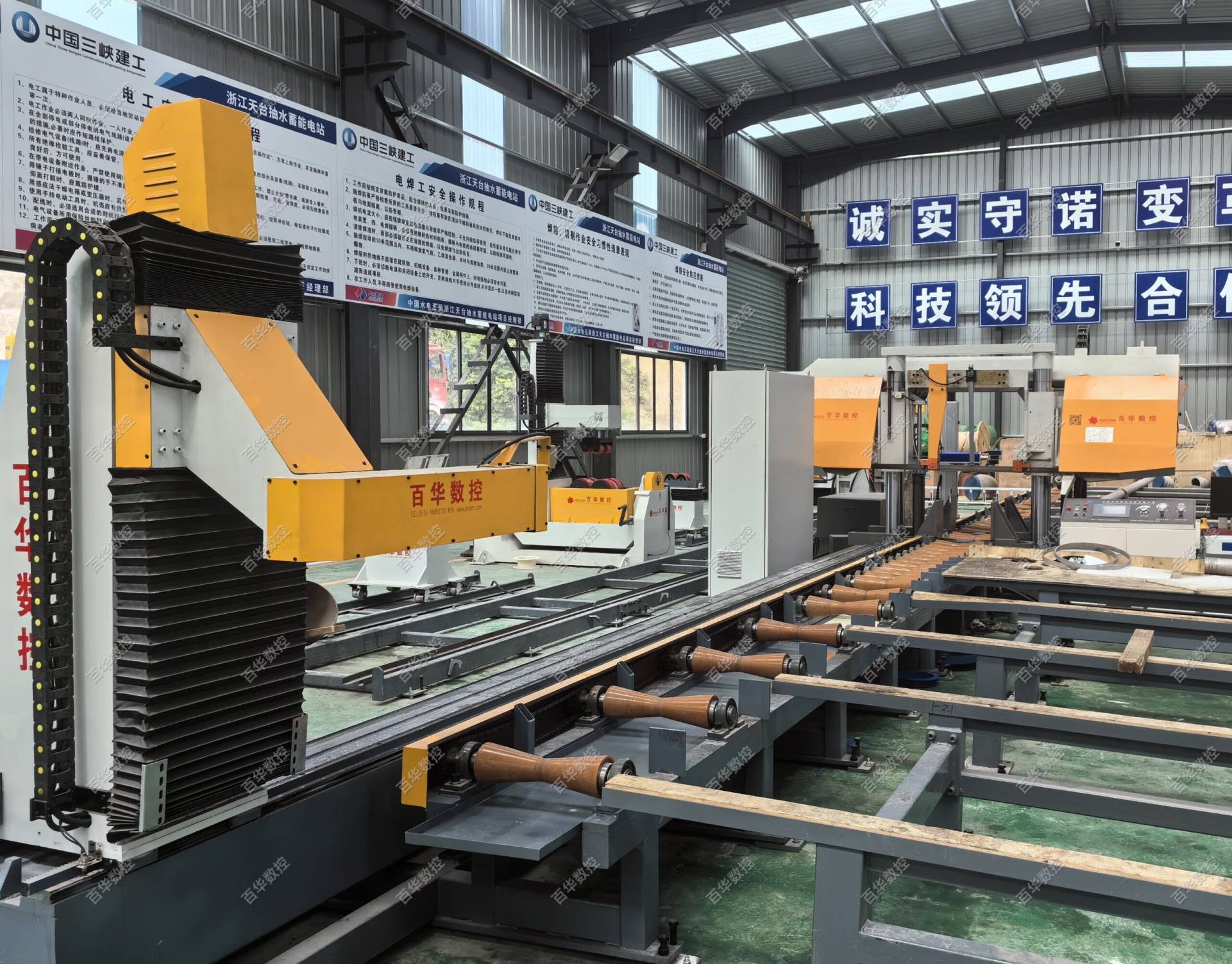 The bandsaw is available in CNC and standard versions. When used with a production line it is typically supplied in the CNC version, in which a PLC automatic program provides integrated control of all machine functions as well as the associated material handling system, CNC fixed-length system, etc.