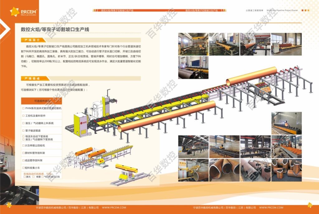 The CNC flame/plasma cutting and beveling production line is a high-efficiency thermal processing system developed by our company’s CNC machine tool experts specifically for rapid pipe cutting and blanking across various industries. It offers powerful machining capability and can automatically perform fixed-length straight cutting, beveling, and contour cutting of pipes (saddle cuts, elliptical holes, rounded holes, lobster-back segments, orthogonal/oblique intersecting lines, pipe-end grooving, etc.; channel steel and square tube cutting functions can also be added). Cutting efficiency exceeds 200 pipes per day. When equipped with a corresponding logistics system, it enables continuous flow production to meet the needs of large-batch intelligent pipe cutting and blanking.